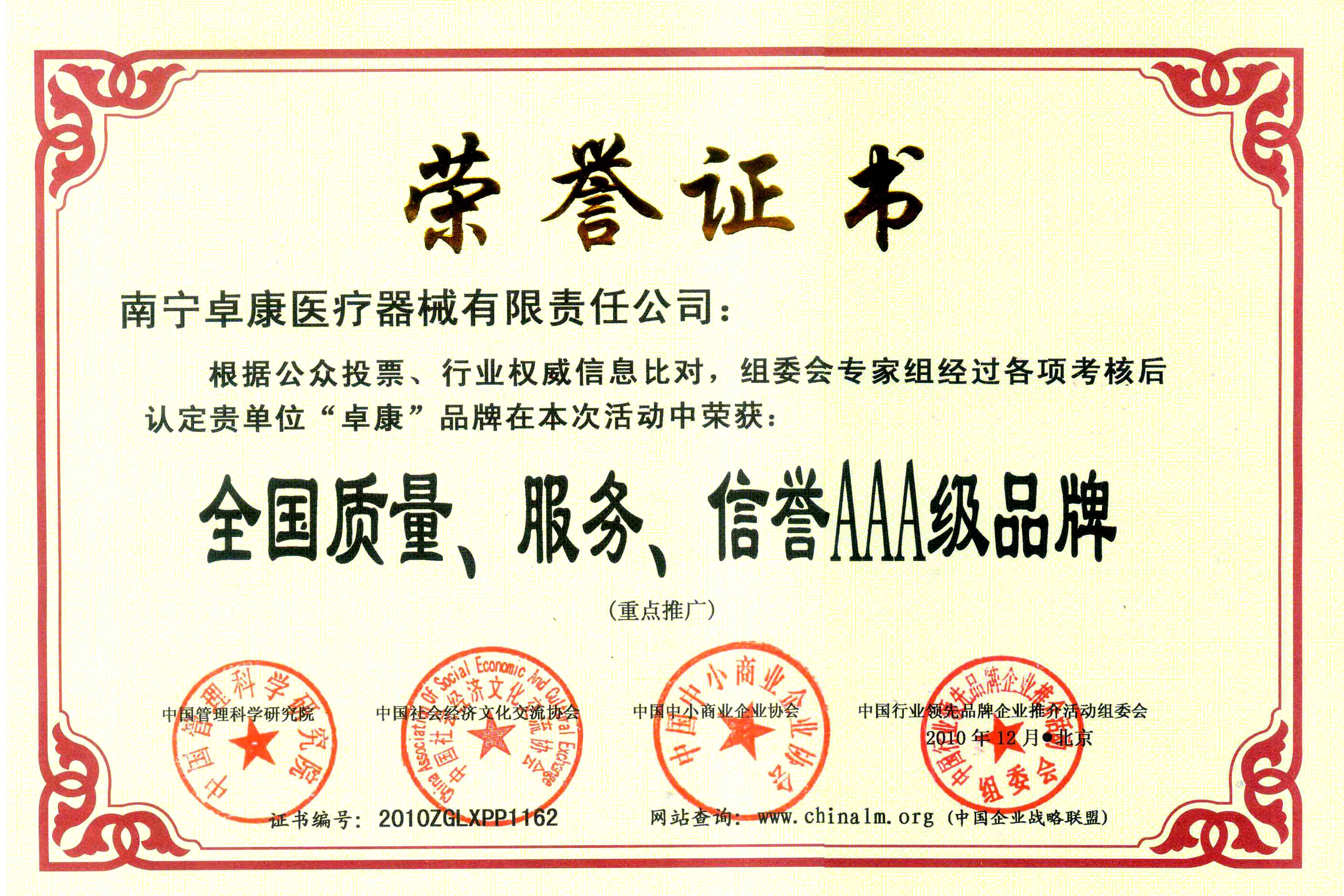 陸江榮獲引領(lǐng)行業(yè)發(fā)展杰出貢獻(xiàn)人物證書 --------卓康公司榮獲全國(guó)質(zhì)量、服務(wù)、信譽(yù)AAA級(jí)品牌證書